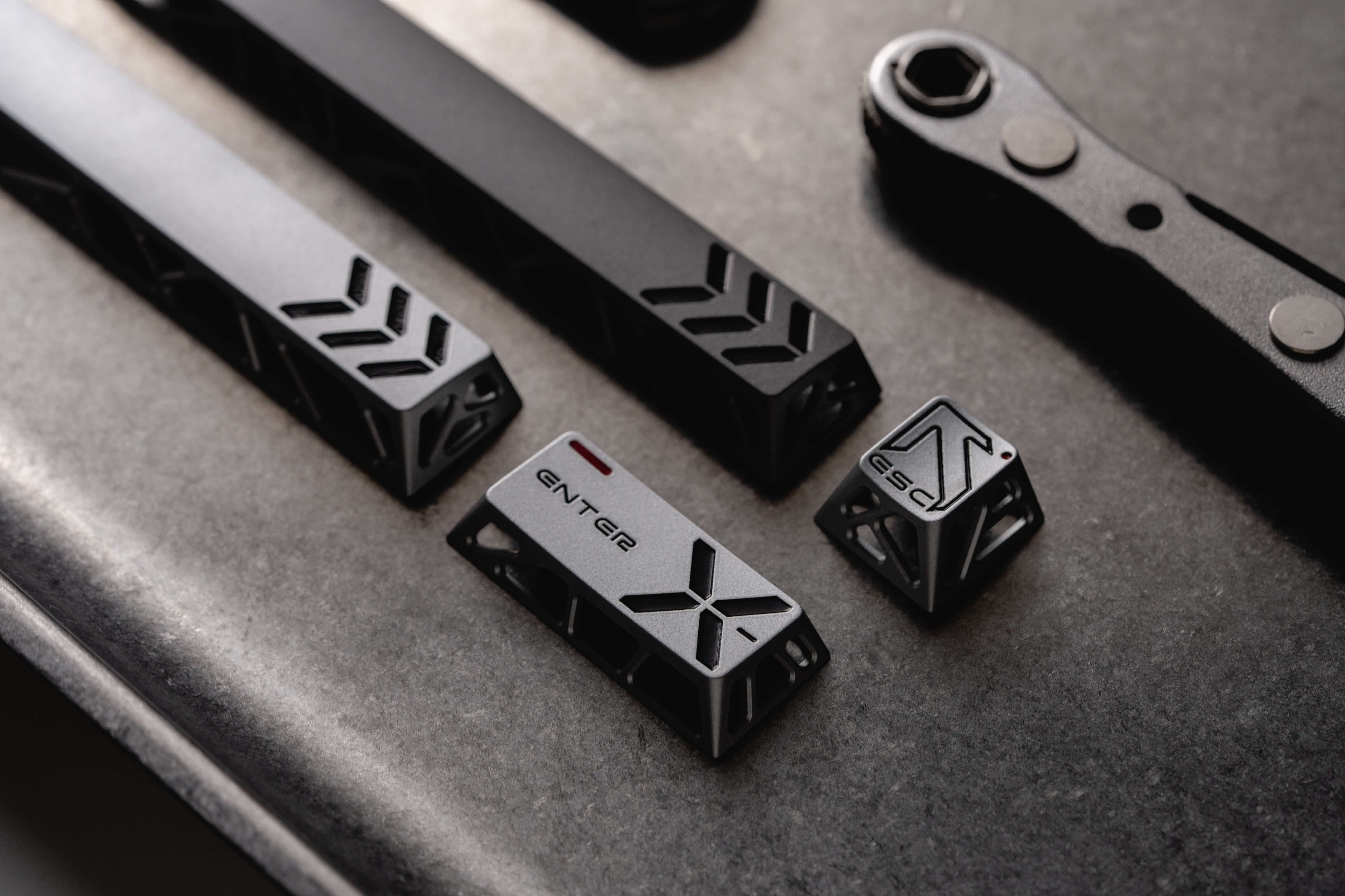 Introducing the Hi-Fi Keycaps, a three-key aluminum set designed for keyboard enthusiasts who demand both sound and precision. With a hollow structure that removes the usual keycap cavity, the K-001 restores your keyboard’s original high-fidelity sound, delivering metallic resonance and pure tone with every keystroke.